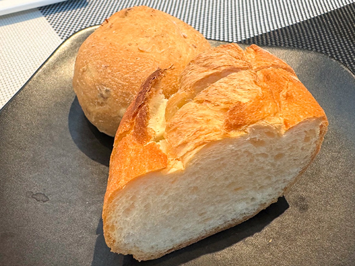 途中、パンも提供してくれます。味・食感違いのパンでどちらも、小麦の風味を感じられてそのままでも美味しい!が、メインのソースが余ったらぜひ、パンに付けて頂いてください。パンのほんのり感じられる甘みとソースの旨味が融合して最高の一品の完成です♪