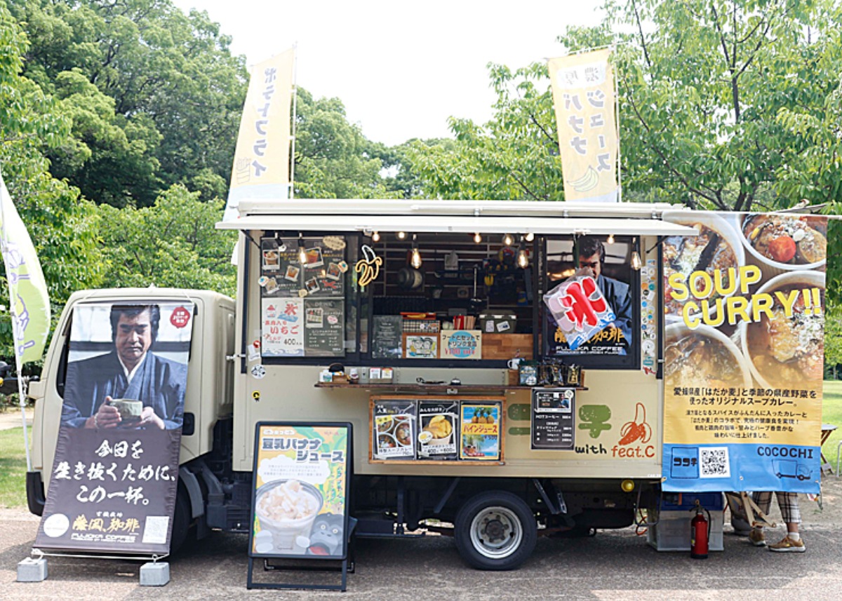 特製スープカレーと豆乳バナナジュースをメインに愛媛県内を中心にキッチンカーで出店。
