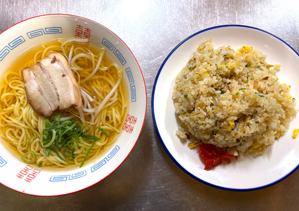 鶏ガラと豚骨のダシが融合したあっさり味のラーメン。昔ながらの中華そばを思わせる素朴な味が特長で、胡椒のパンチがクセになる。セットのヤキメシは、創業当初から変わらぬ味で、シンプルでほっとする味わいと大好評。(定価850円)▶旅ぱすポイント利用なら50円お得です!