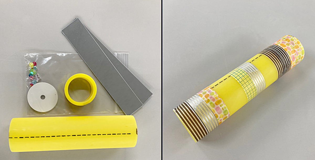 都市ガスを届けるために使われているガス管(ポリエチレン管)のリサイクル品を使って、自分好みのオリジナル万華鏡をつくってみませんか?