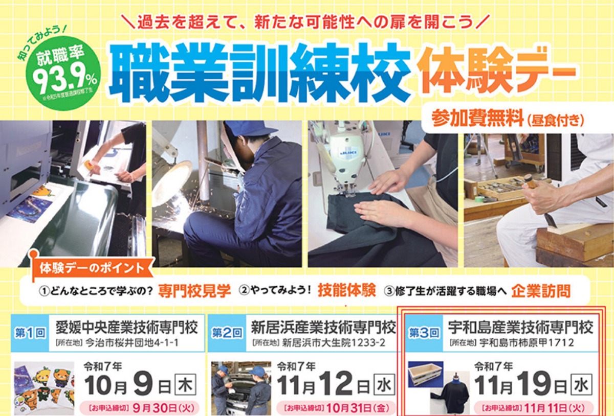宇和島産業技術専門校で、2025年11月19日(水)に「職業訓練校体験デー」を開催!