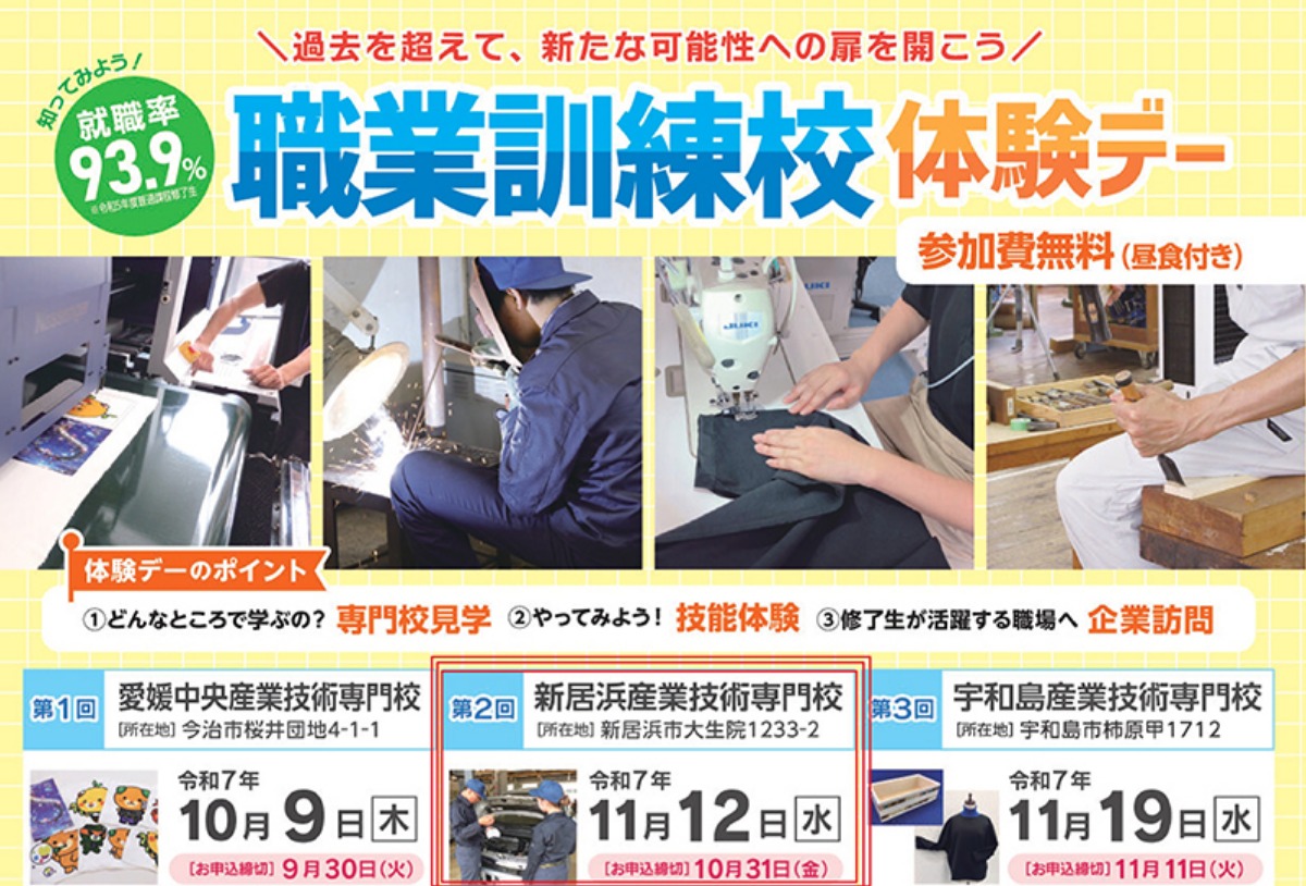 新居浜産業技術専門校で、2025年11月12日(水)に「職業訓練校体験デー」を開催!