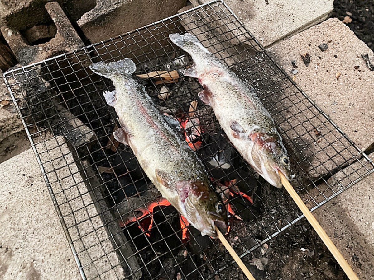 アマゴ釣りを楽しんだ後は、釣ったアマゴを自分で調理して楽しむことも可能。