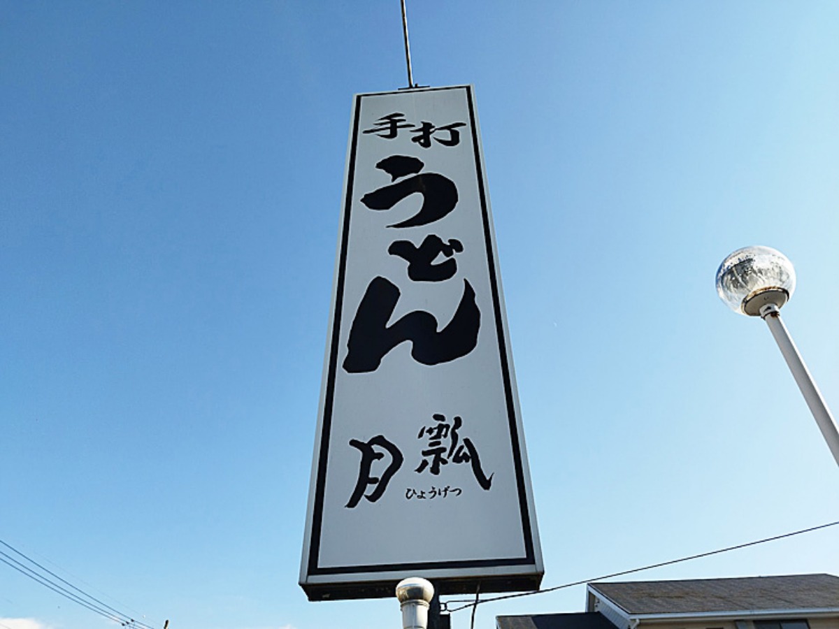 存在感のある「手打ちうどん瓢月」の看板が目印。