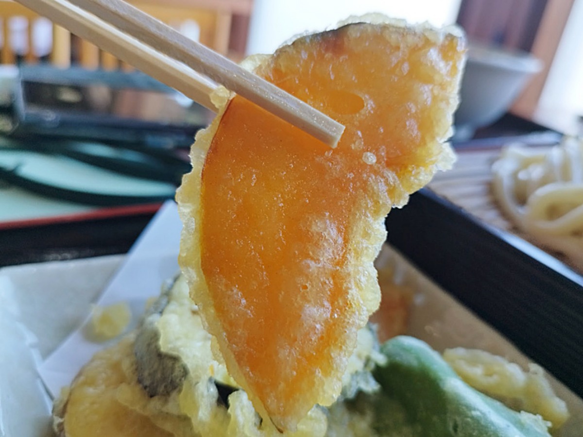 目の前でうどんを打つ姿が見れる! 揚げたてのサクサク天ぷらとモチモチつるつる麺の融合