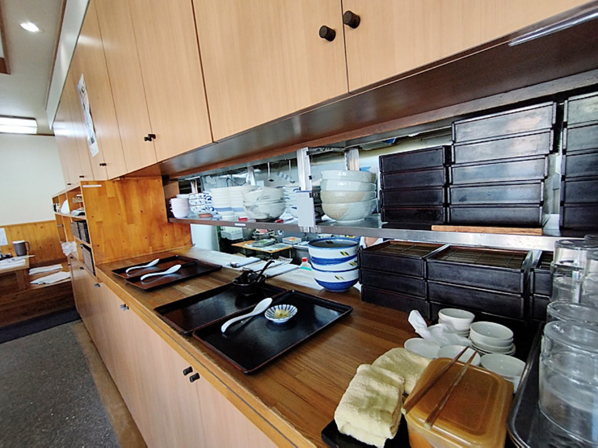 大迫力かつ、熱気に溢れた厨房内にも入らせていただきました。職人さんの「肉うどんOKでーす!」と威勢のいい声が上がります。