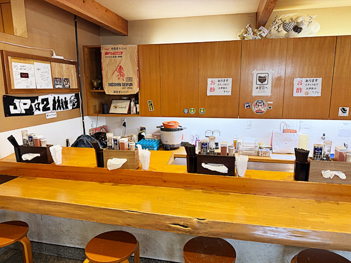 カウンター席あり。昼休憩に訪れる一人客や常連さんの姿が多く見られます。