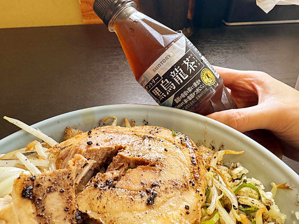 食べ進めるうちにお茶が欲しくなり、黒烏龍茶を注文。脂っこさが気になる女性にはぴったりです。