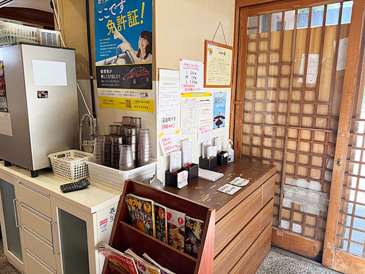 受付カウンター横にはレンゲなども用意されており、セルフサービス方式なので取り忘れにご注意を!
