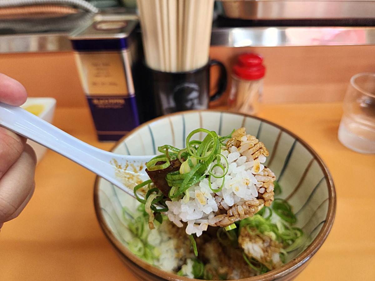 食後に店主さんとおしゃべりしていたら、「とりめしもおすすめだよ」と一言。