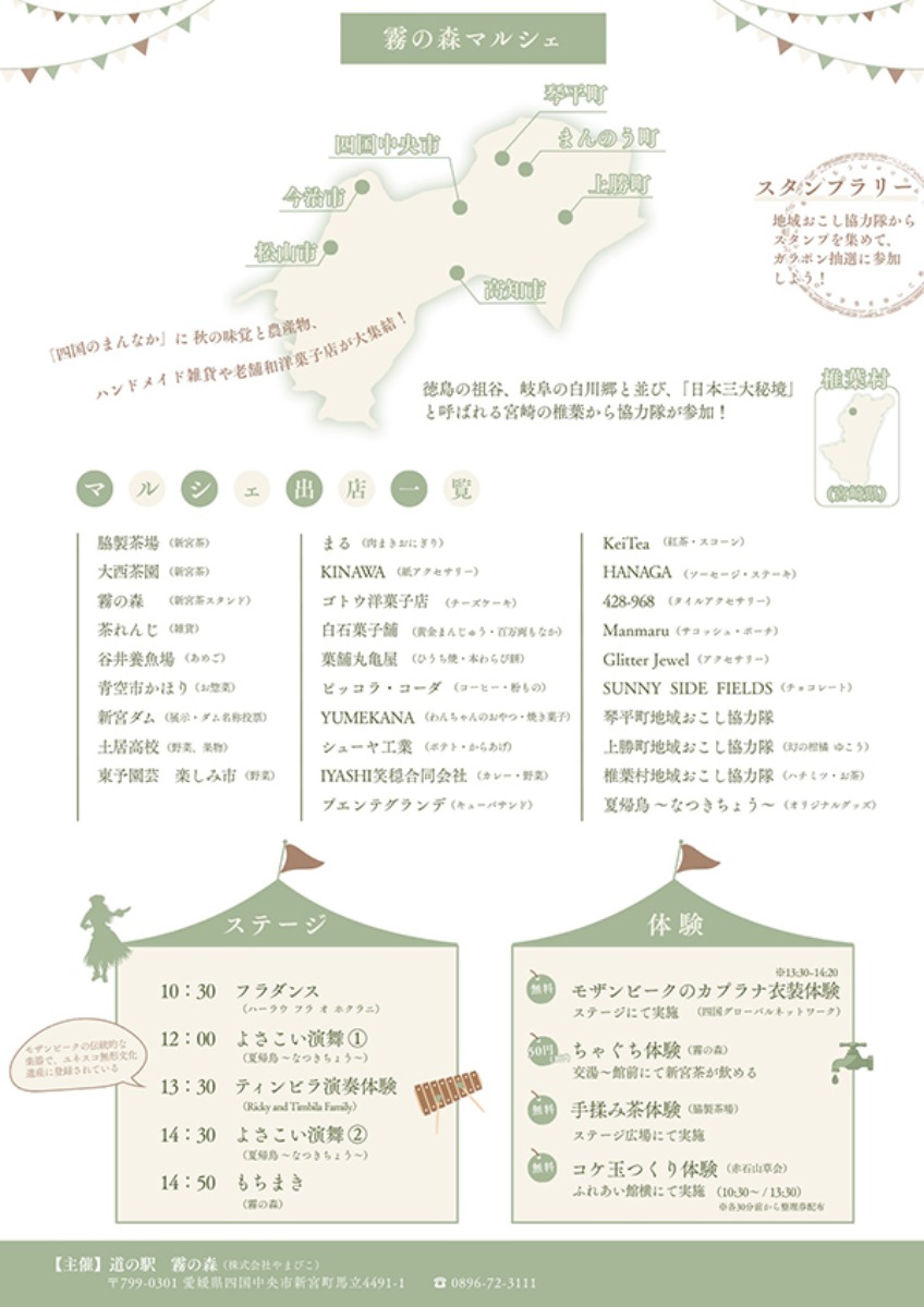 この収穫祭の目玉は、四国全域から選りすぐりのグルメと特産品が集まる「霧の森マルシェ」!