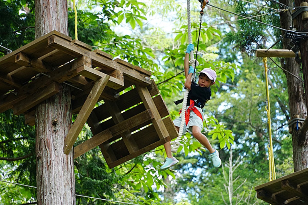 ツリートレッキングは4歳または身長110cm以上から参加可能で、家族みんなで冒険気分が味わえます。