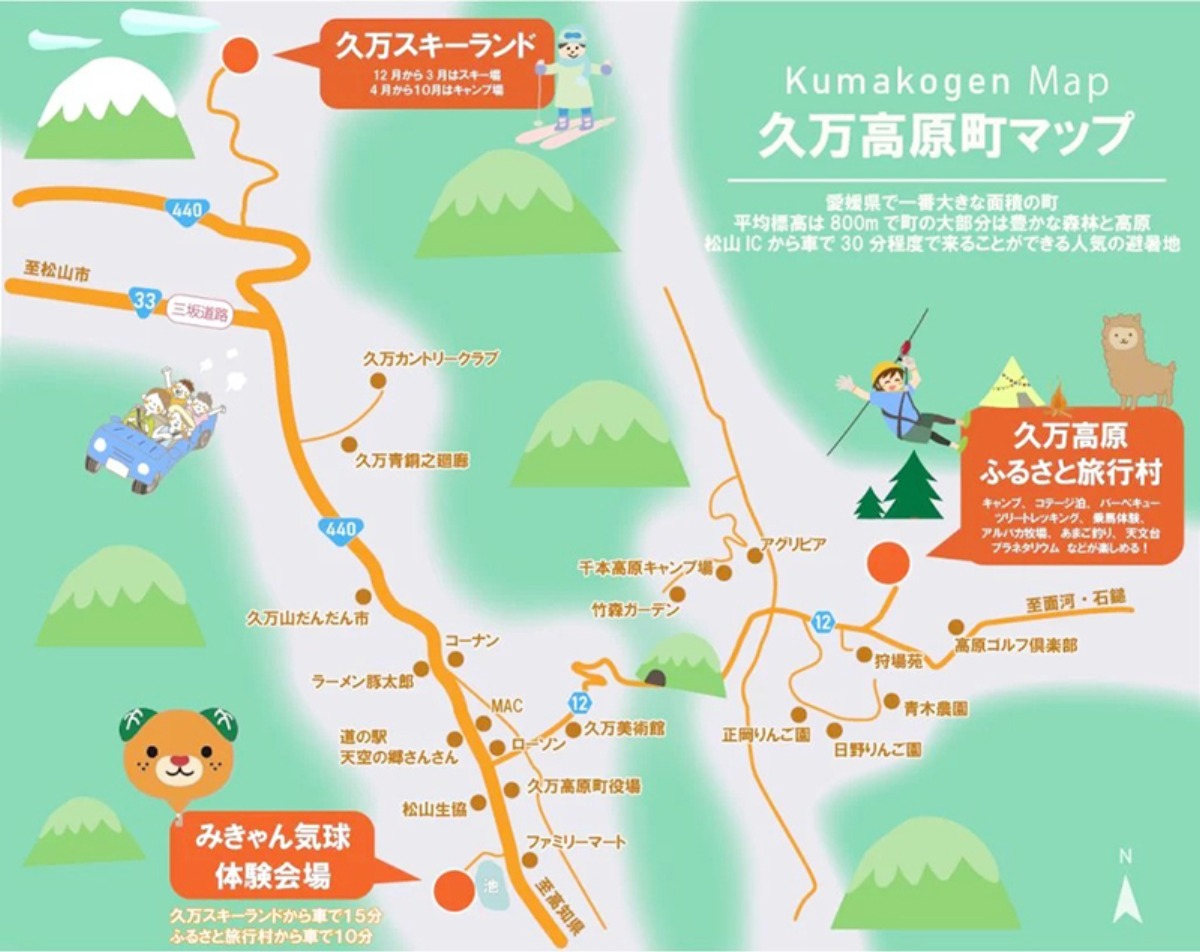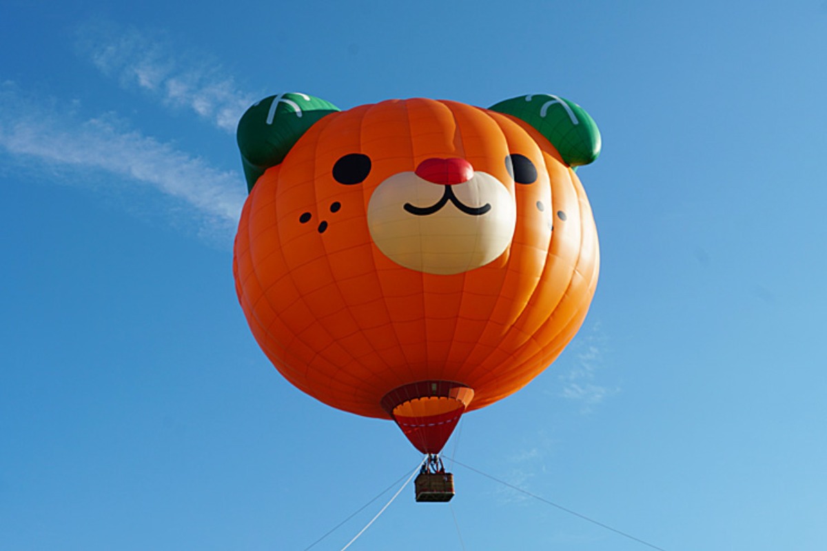 愛媛のキャラクター「みきゃん」型の熱気球が早朝に運行し、高原の景色を空から眺める感動体験が待っています。