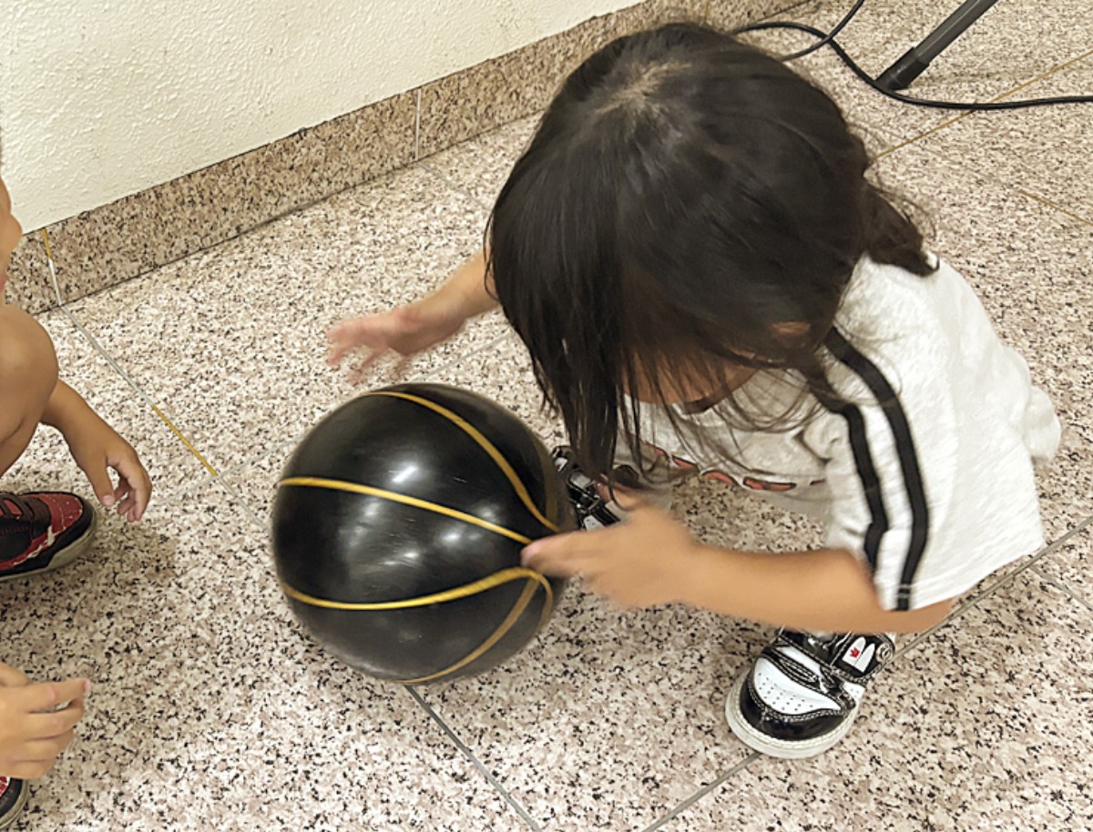 途中で止まったボウルを回収して、もう一回子どもたちに投げさせてくれました。