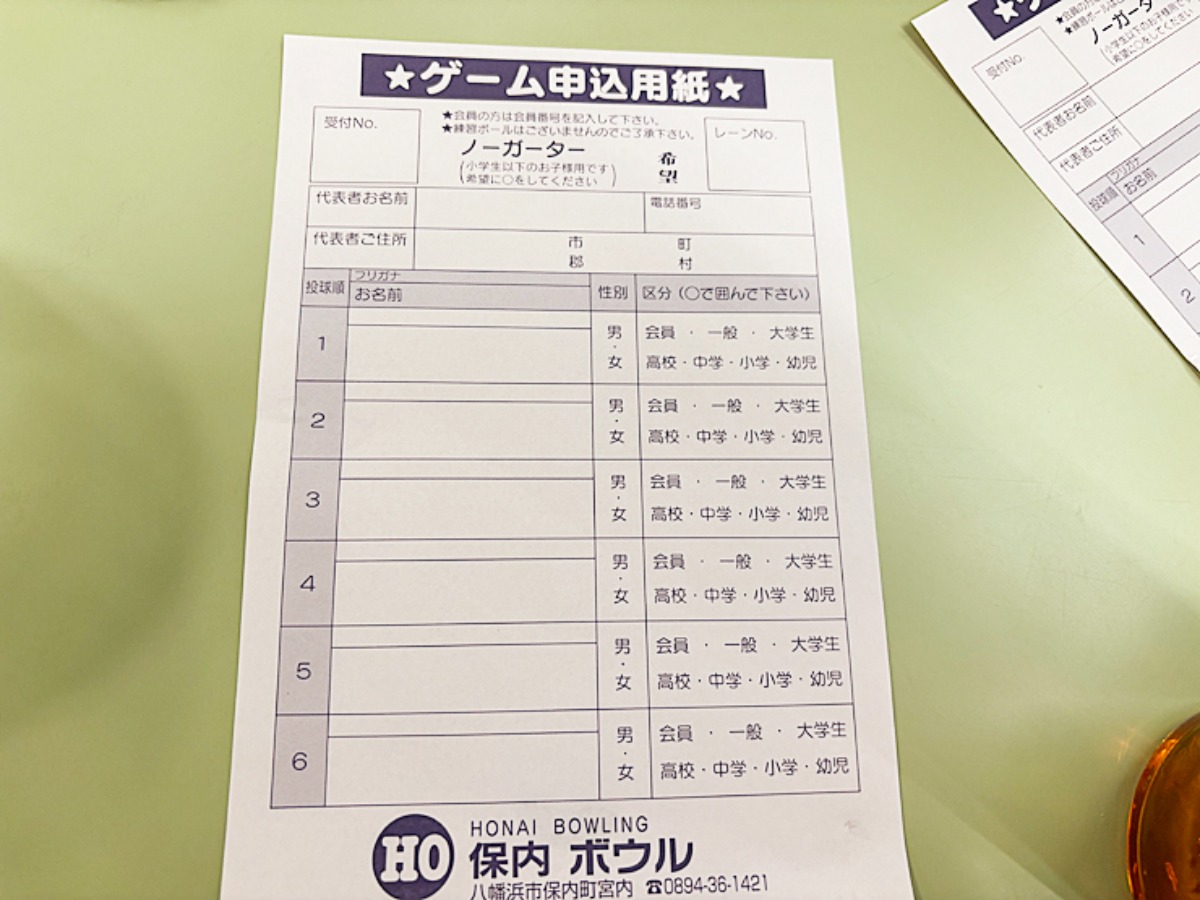 申し込み時に、子どもレーンにはガーターガードを希望。