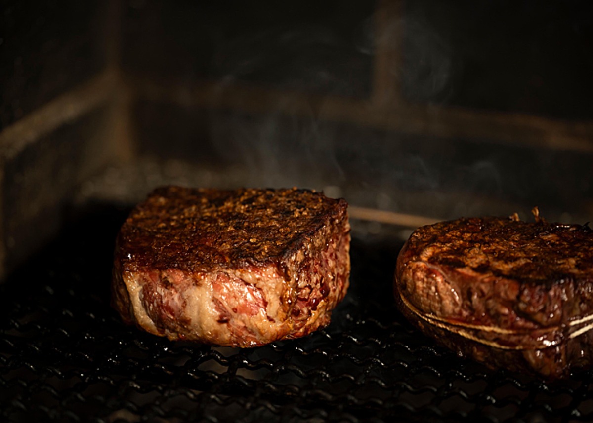 あかね和牛を中心に提供されるステーキは、30 ~40分かけて薪火でじっくり焼き上げる。