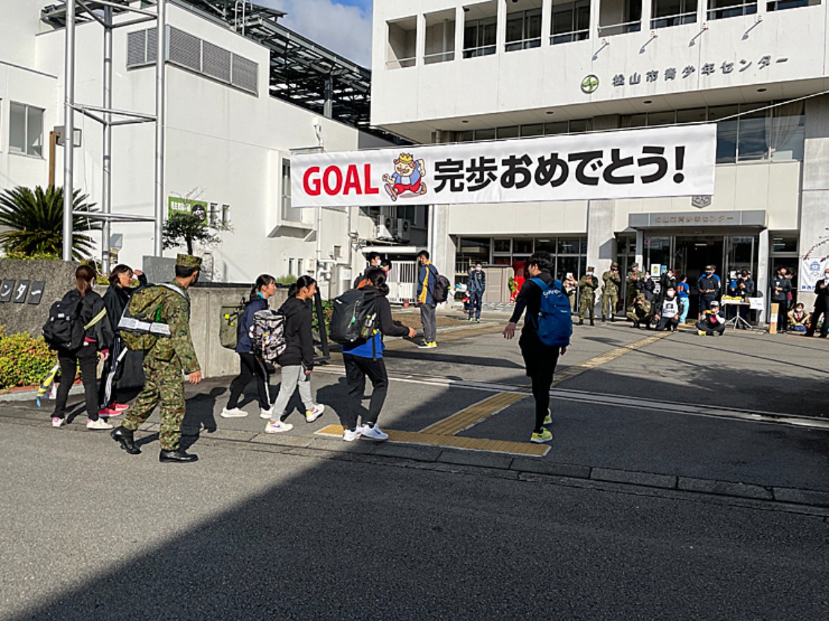 途中、歩くのが辛くなり、疲れや不安を感じる瞬間もありますが、陸上自衛隊 松山駐屯地の方々が見守ってくれることで、安心して歩き続けられます。