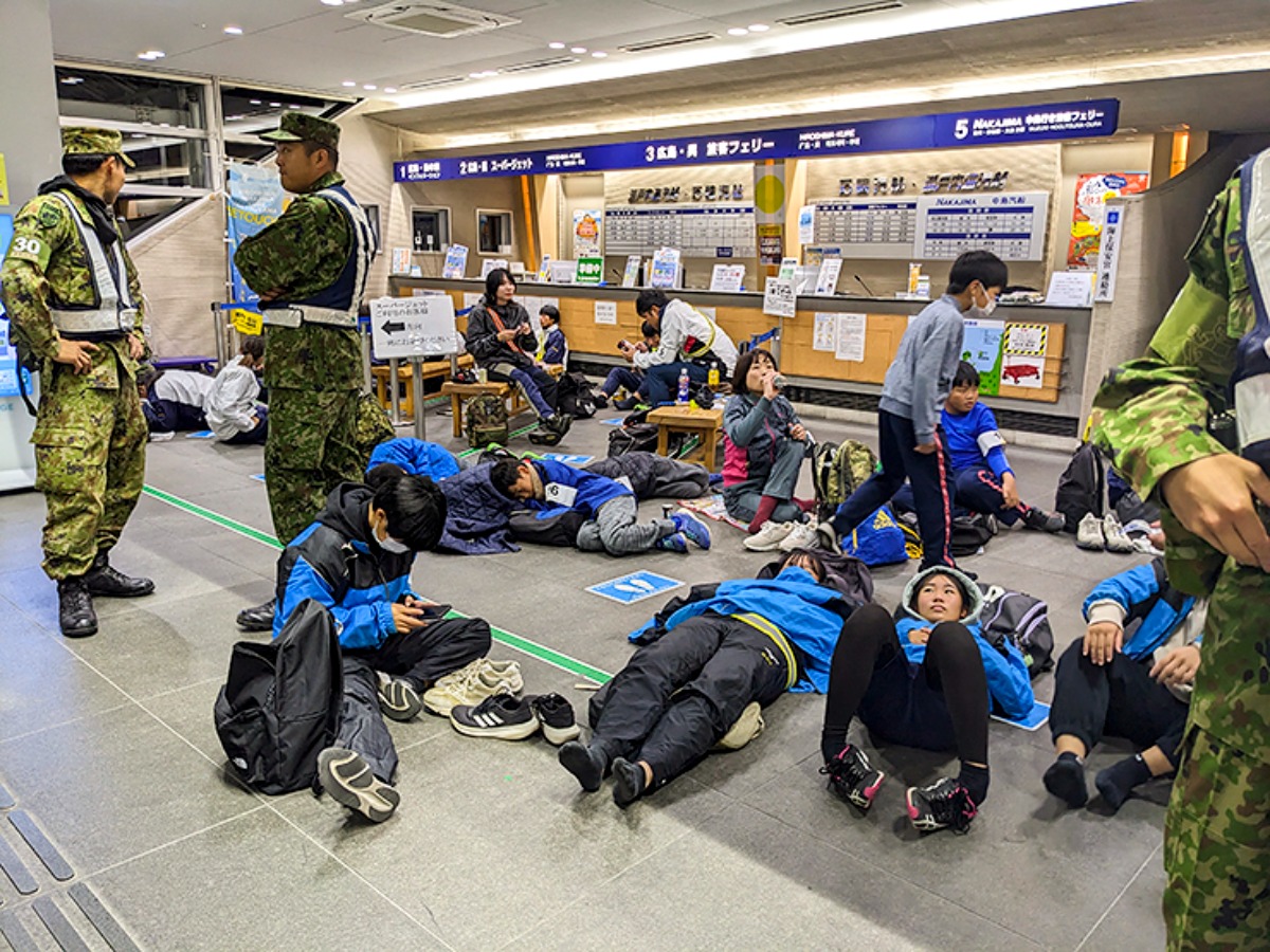 写真に写る迷彩服の方々は、陸上自衛隊 松山駐屯地の皆さん。