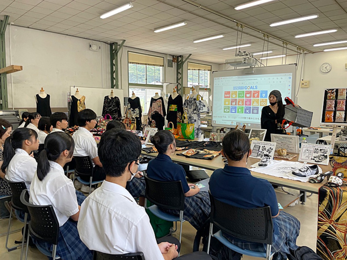 そんな田窪先生が指導するアパレルビジネス科では、工業用ミシンを使用した服作りの全工程を学んだり、アパレルに関する各種資格の取得や、服作りを通して地域と関わる機会を設けたりしています。