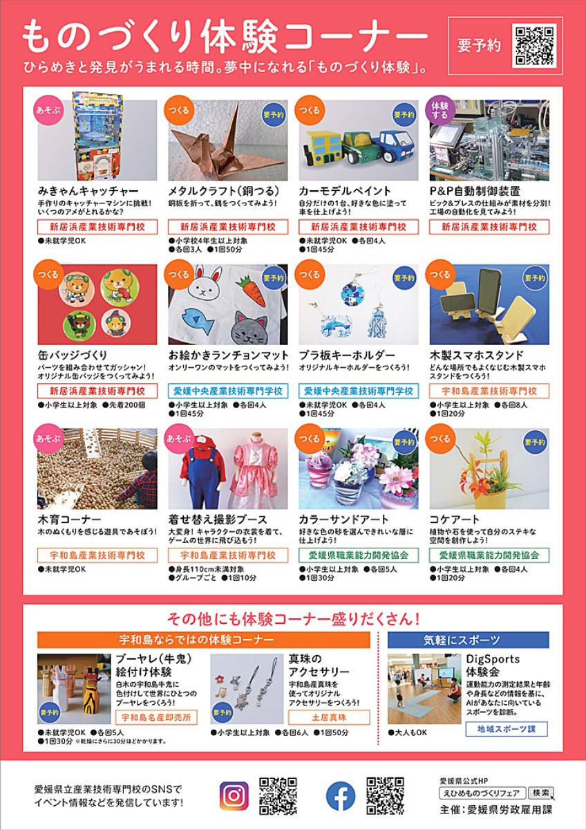 その他イベント情報は愛媛県公式サイト、または愛媛県立産業技術専門校のSNSアカウントからも発信中なので、そちらもぜひチェックしてください。