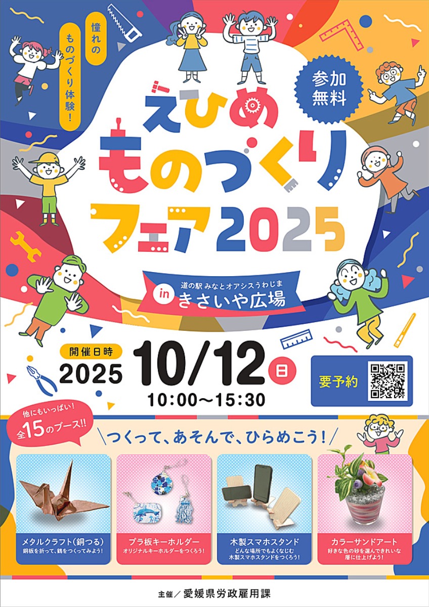 10月12日(日)に宇和島市・道の駅みなとオアシスうわじま きさいや広場にて開催の「えひめものづくりフェアinきさいや広場」では、宇和島産業技術専門校による出展も予定されています。