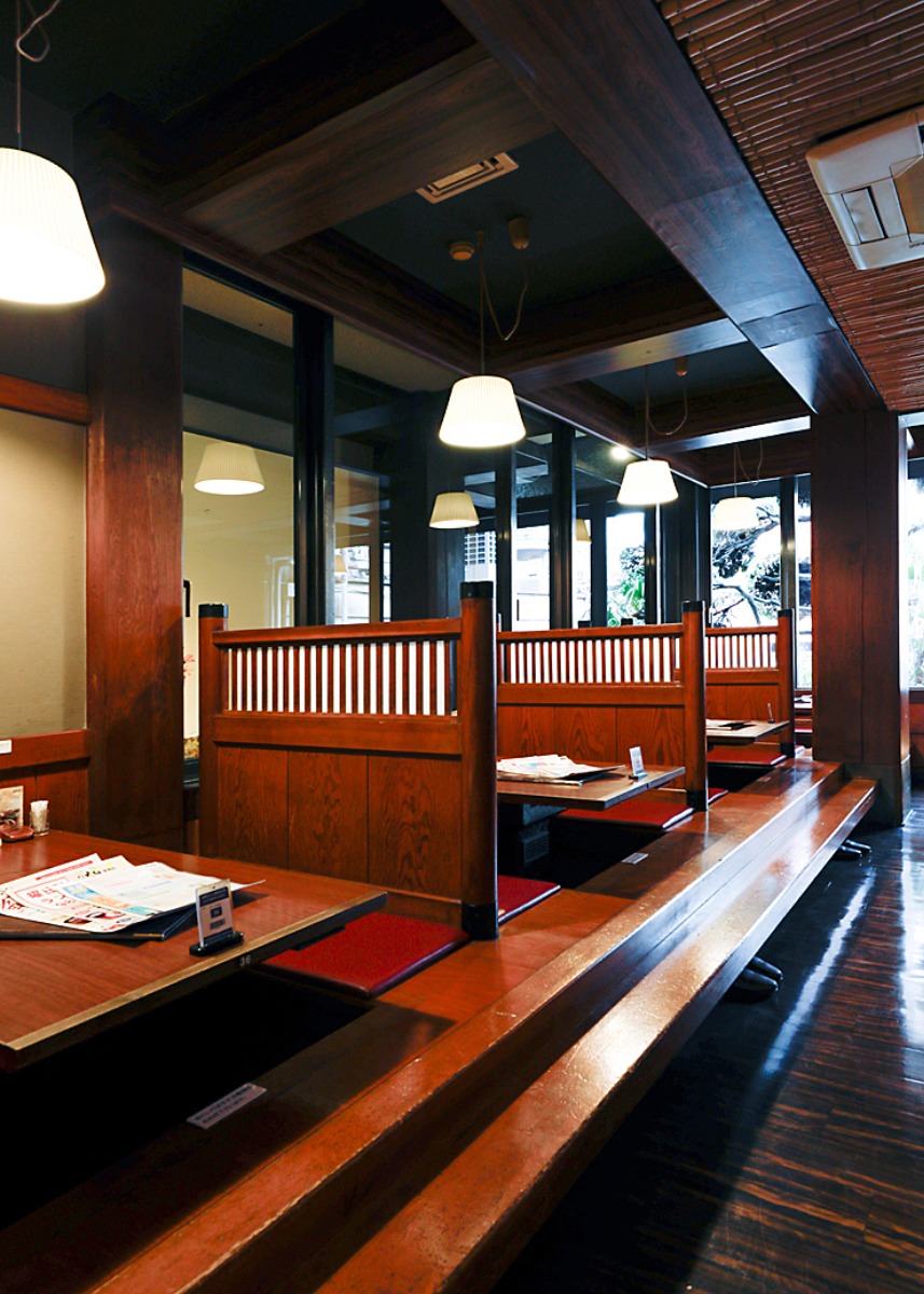テーブル席、掘りごたつ席、個室など席種も多く、様々なシーンで利用できる