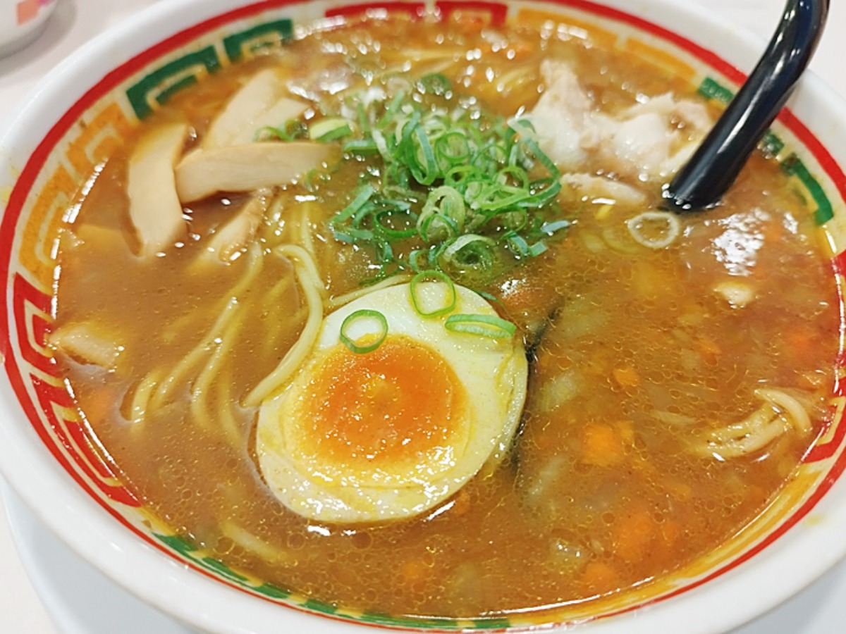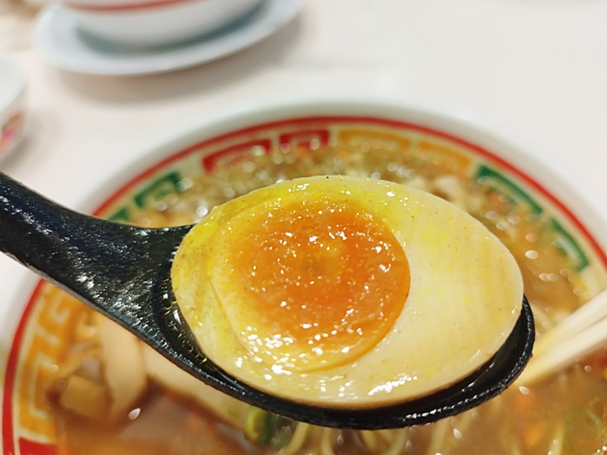味玉もカレースープがしみ込んでなんとも美味。ぜひ皆様にも一度ご賞味あれ。