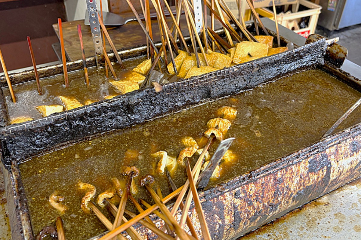 出汁がしっかり染みたおでんは、ビールのおつまみにも美味しい、濃い旨味が特徴。