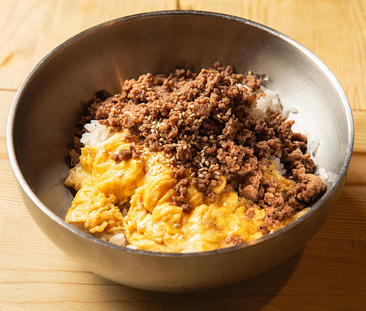 上質なタン先をミンチにしたそぼろとふわふわ卵の贅沢丼。数量限定