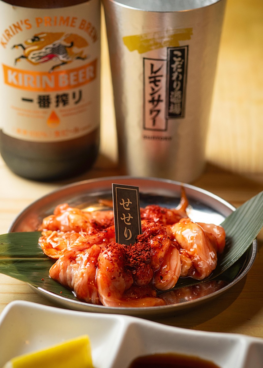 弾力ある独特の食感と脂の乗った旨みのある希少部位。塩、タレ、ピリ辛から好みをチョイスできる