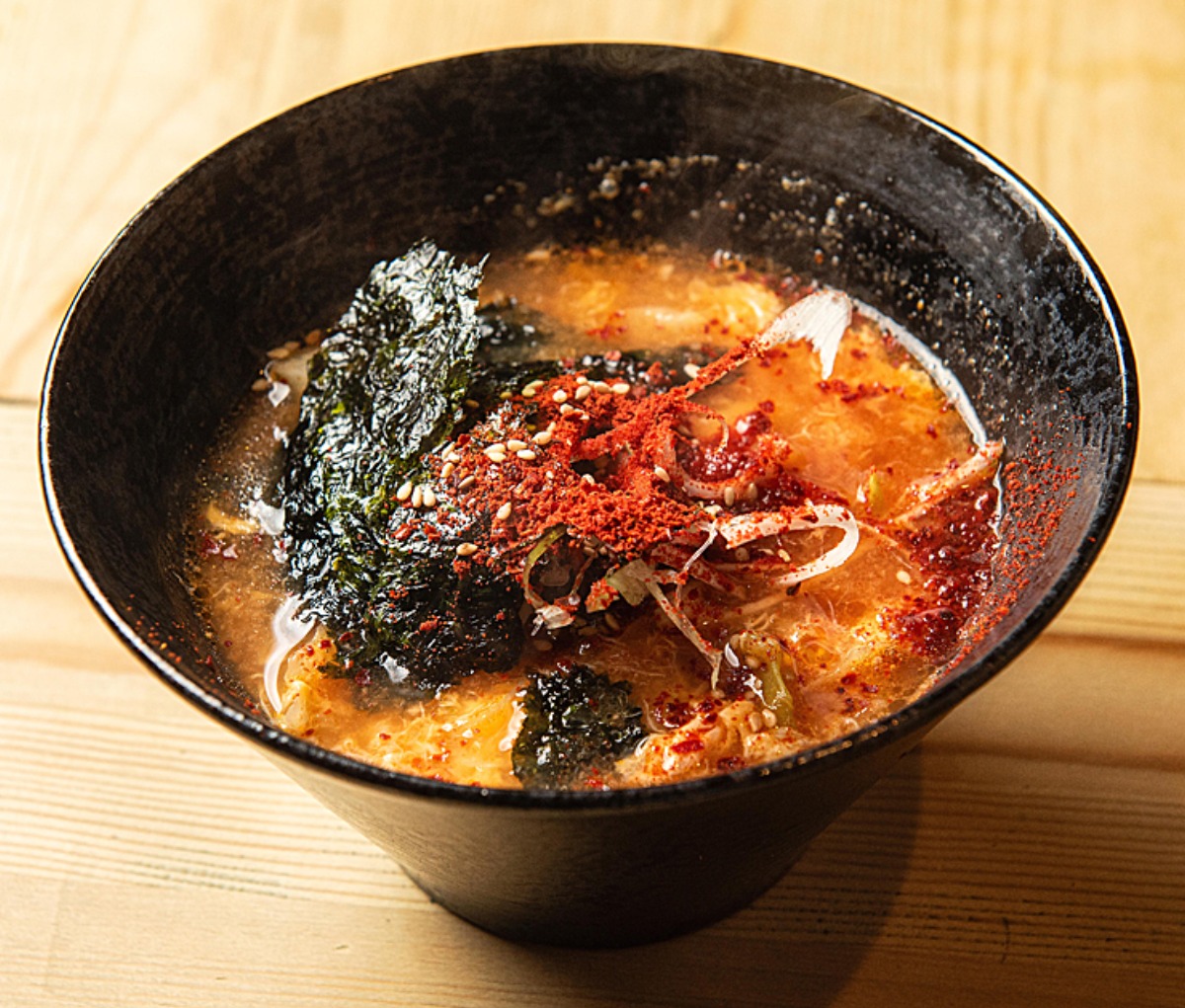 キャベツ、ウインナー、卵、韓国海苔、ネギの具だくさんスープ