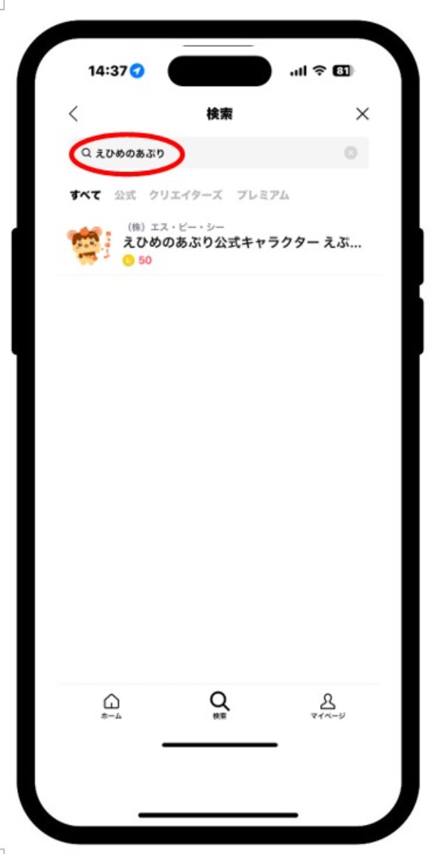 LINEスタンプの検索欄に『えひめのあぷり』と入力すると見つかりますよ♪