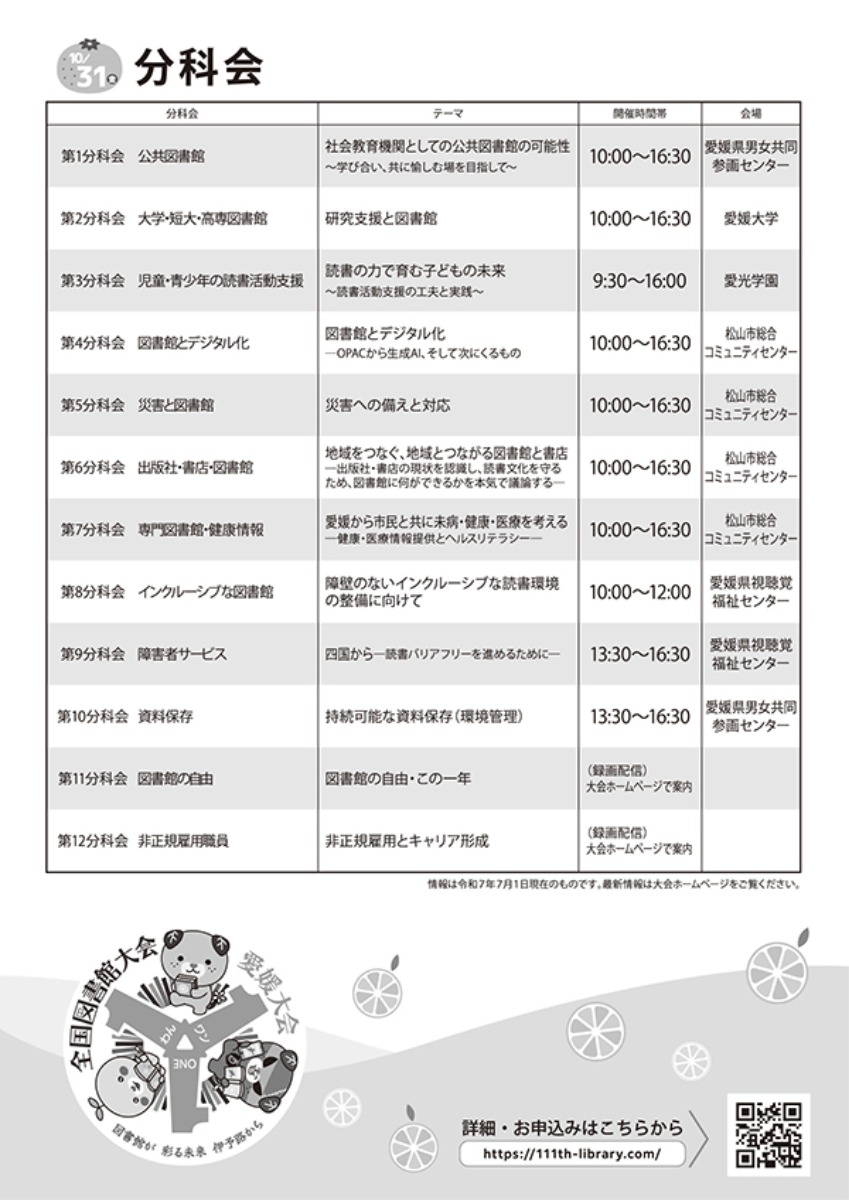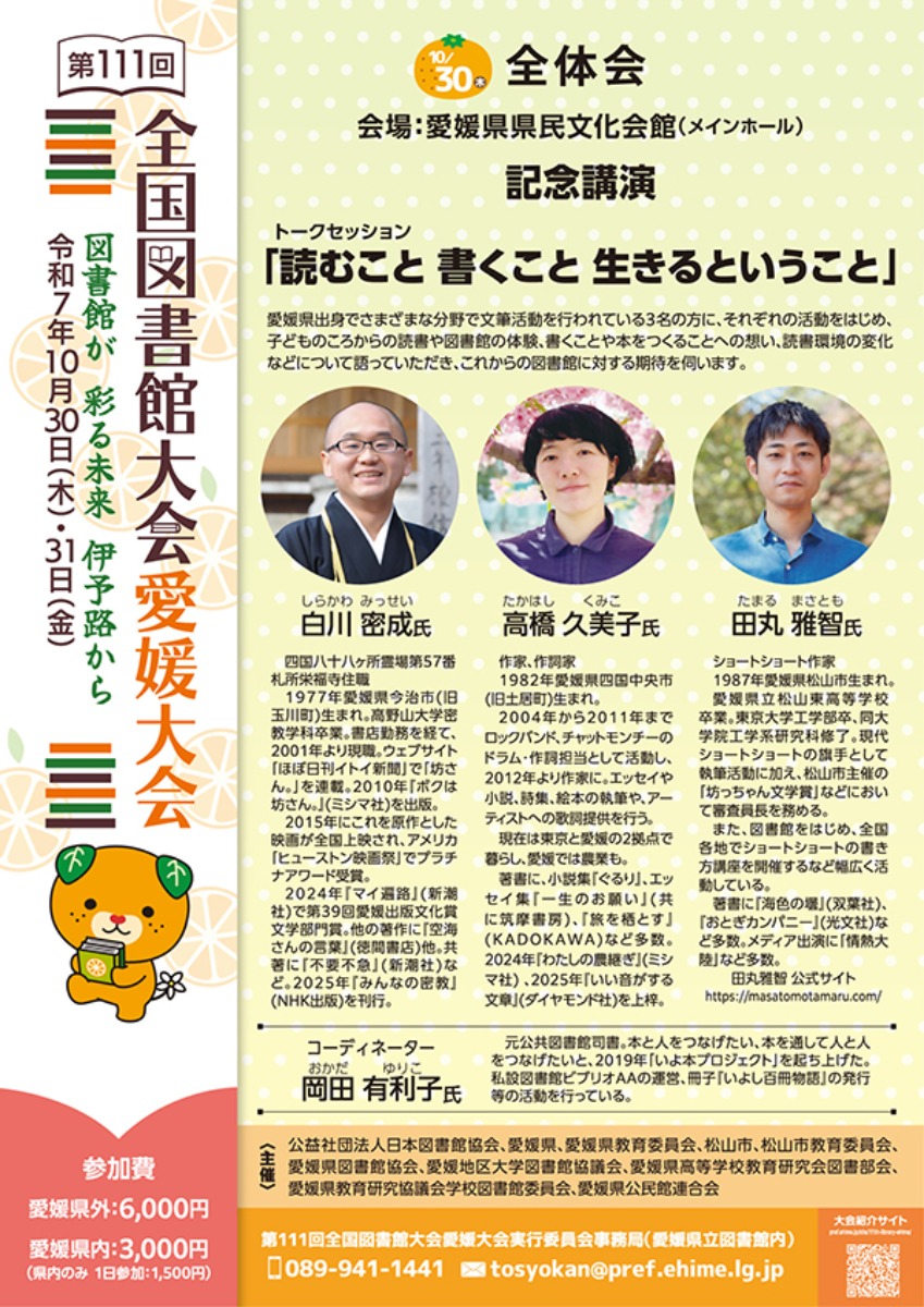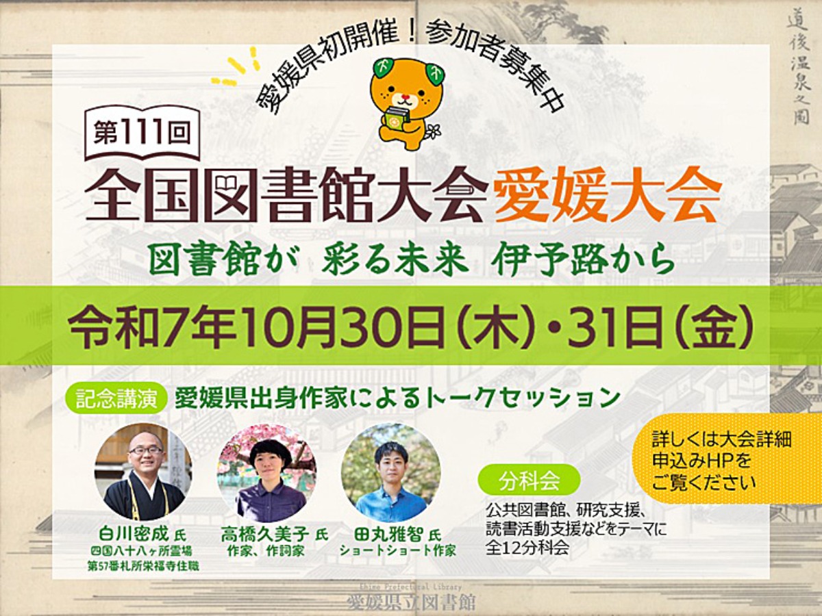 「第111回 全国図書館大会 愛媛大会」が2025年10月30日(木) ・31日(金) の2日間にわたって行われます。