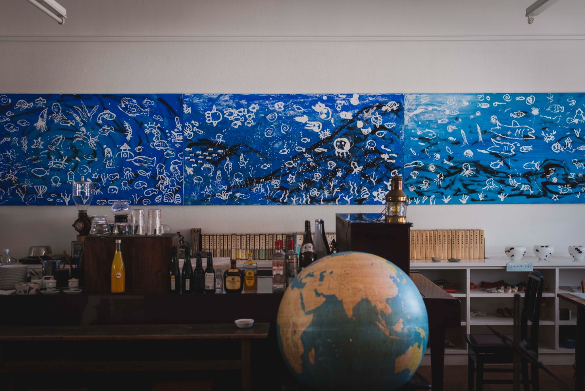 廃校になった小学校を活用した島のプラットフォーム。現在は土・日曜を中心に営業しており、カフェではフレンチ仕込みのカレーを目当てに、島内外から多くの人が訪れます。