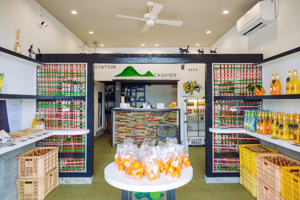 島の駅ごごしまのシンボルマークが施されたオリジナルのかみかんジュースなども販売されていました。