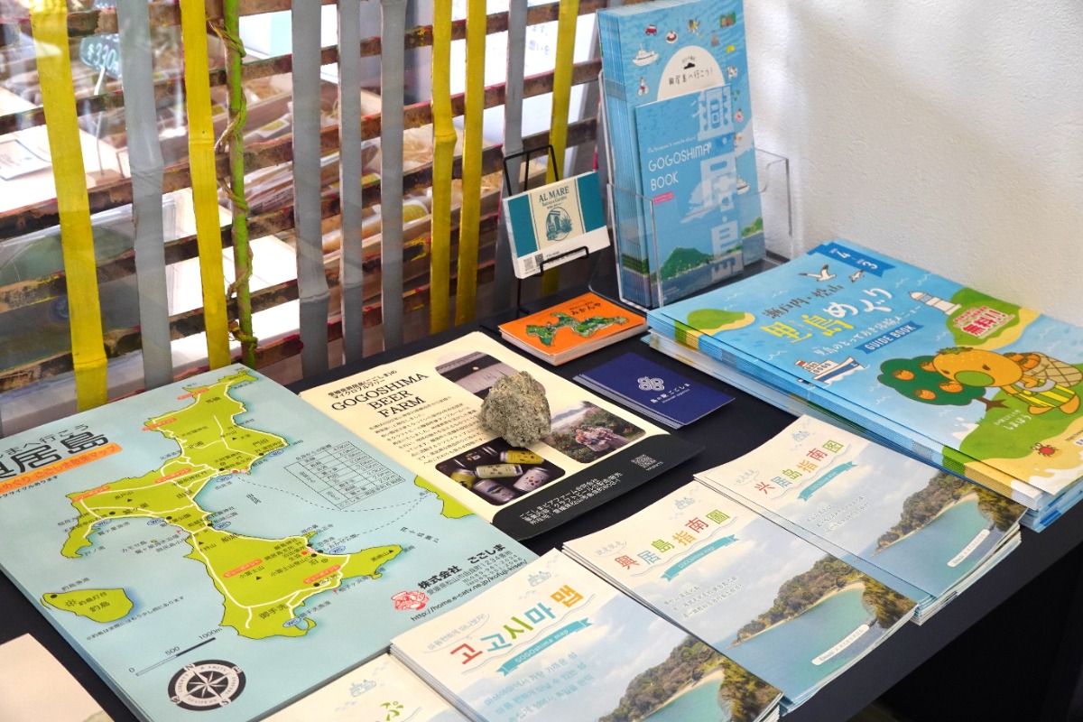 おすすめ観光スポット案内やレンタサイクルの他、ひじきやみかんジュースなど島の特産品も豊富に揃います。最近は釣りのレンタルセットの貸し出しもスタートされたそうです。