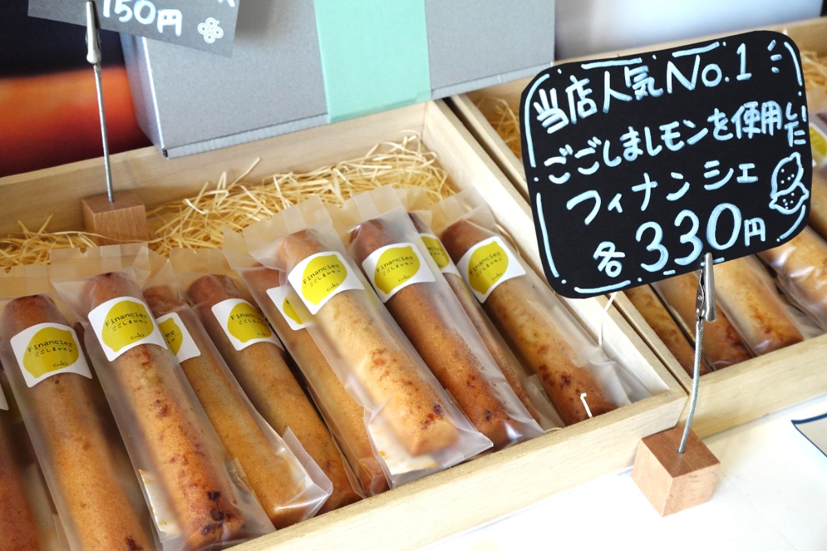 興居島で採れたレモンを使ったフィナンシェ(各330円)も人気です。
