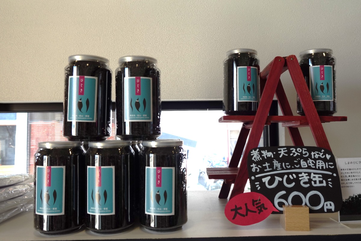 興居島といえば、大人気のひじき缶!お土産にもちょうどよく可愛らしいパッケージが目を引きます。