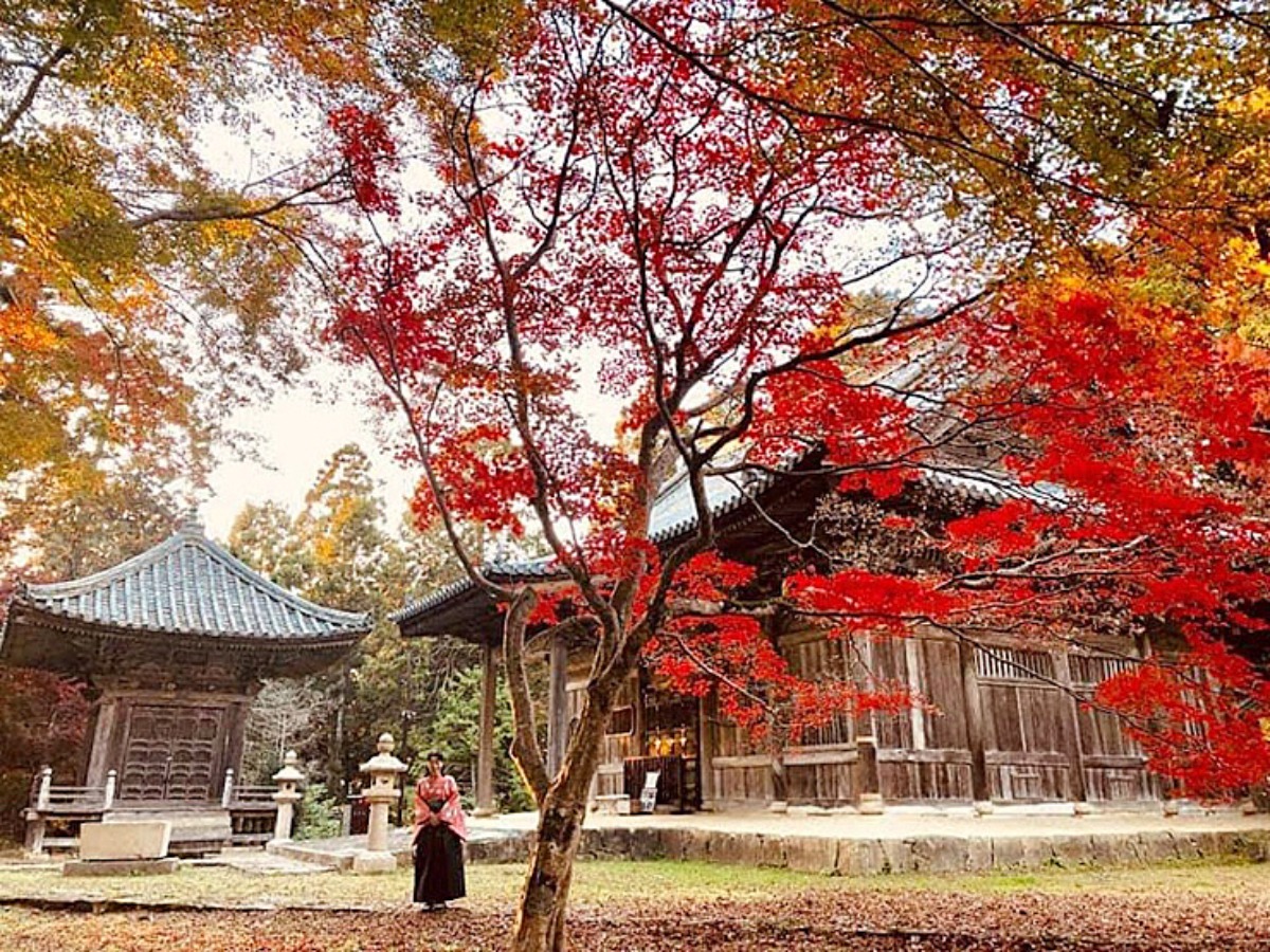 愛媛県大洲市にある「如法寺」は、仏殿など貴重な文化財が眠るお寺として知られていますが、四季折々の美しい景色を楽しむことができるお寺としても人気があります。中でも紅葉の季節は、鮮やかに色付いた木々が境内を彩り、歴史と自然が融合した素晴らしい景色を見ることができます。