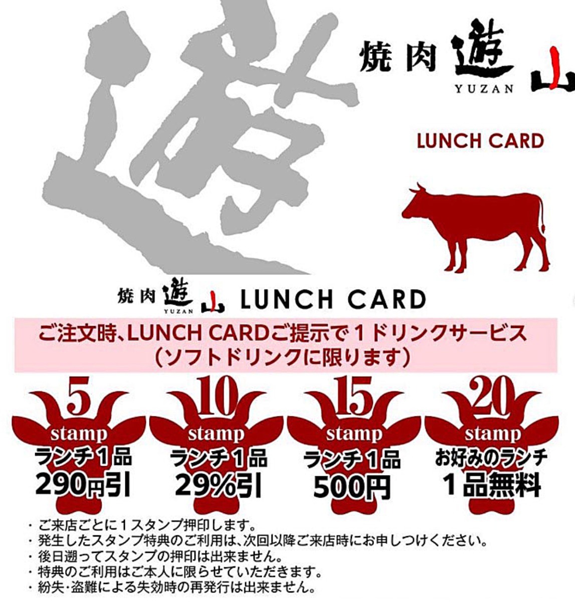 ランチ限定スタンプカードを配布。カード提示でソフトドリンク1杯サービス