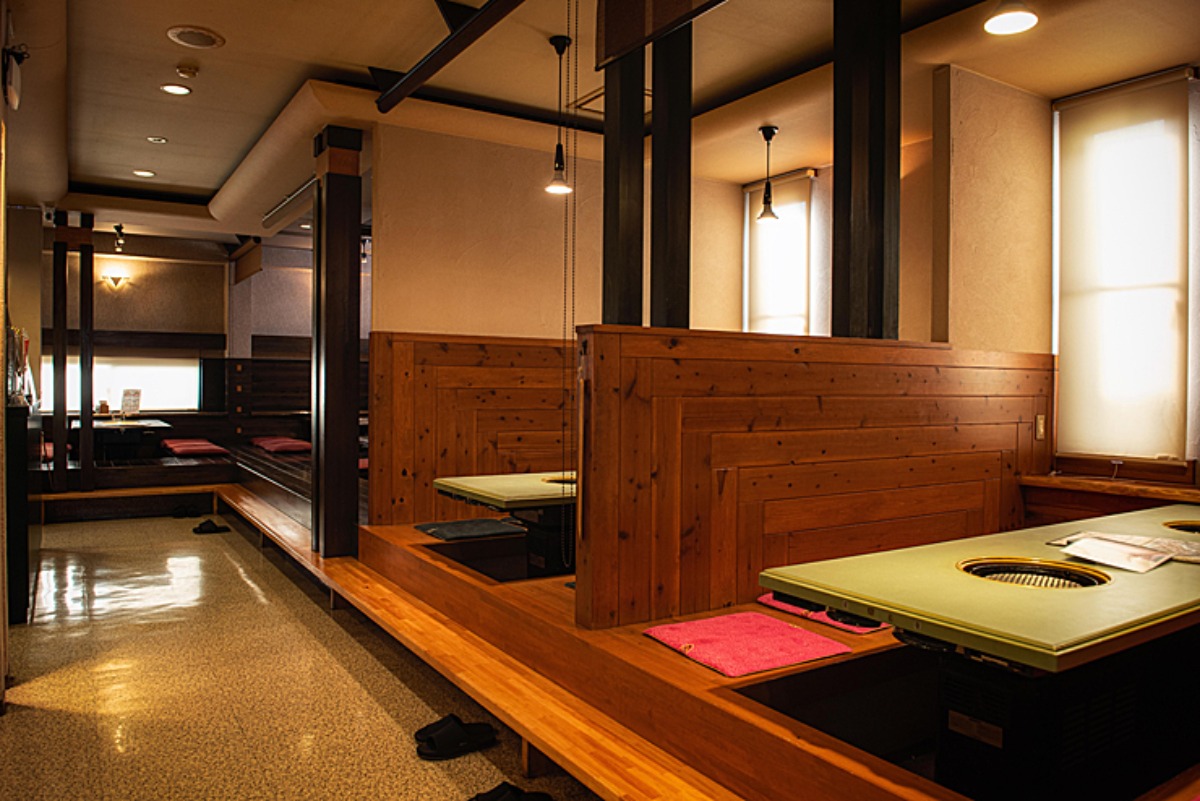 席は全てロールカーテンで仕切られた半個室で、座敷やテーブルでゆったりくつろげる