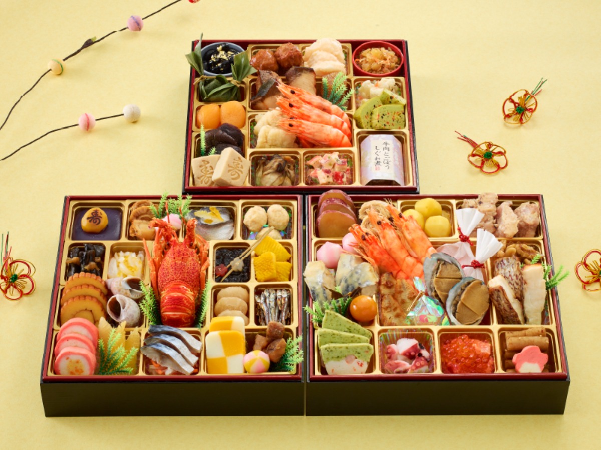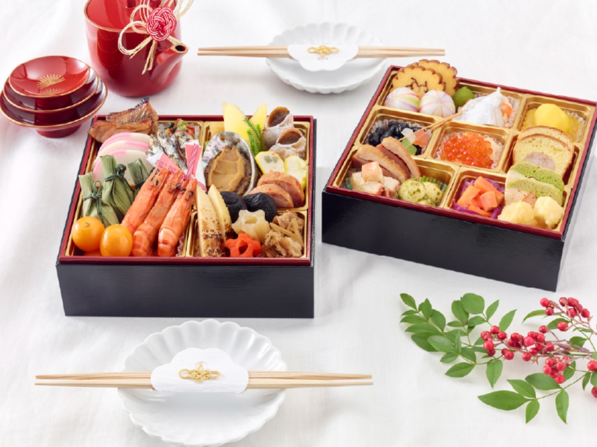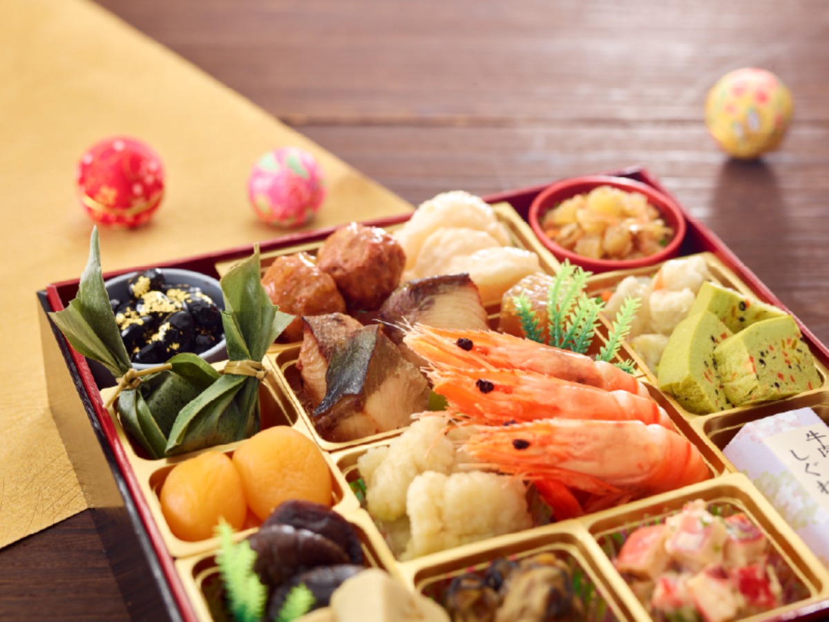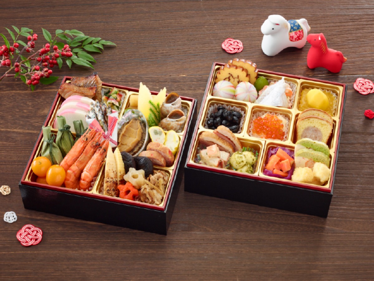 2〜3人前のコンパクトなサイズに全36品目。伝統的なおせちの定番の黒豆、数の子、海老、田作り、伊達巻など縁起物はもちろん、エビとアスパラのテリーヌ、ブリオッシュ・ド・コションなどの洋風メニューもバランスよく取り入れられており、最後まで飽きずにお楽しみいただけます。お子さまからご年配の方まで、幅広い世代に喜ばれる、年越しの食卓を華やかに彩るおせちです。