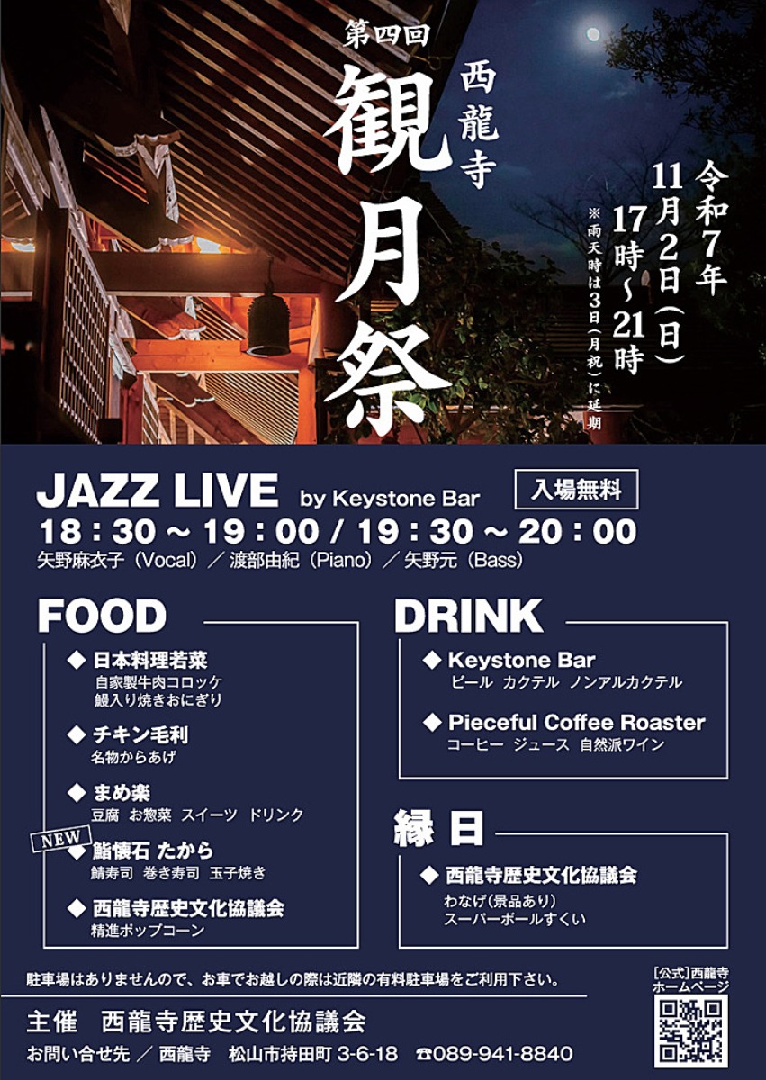 秋の澄んだ空気の下、2025年11月2日(日)に松山市の西龍寺で開催される「第四回西龍寺観月祭」。
