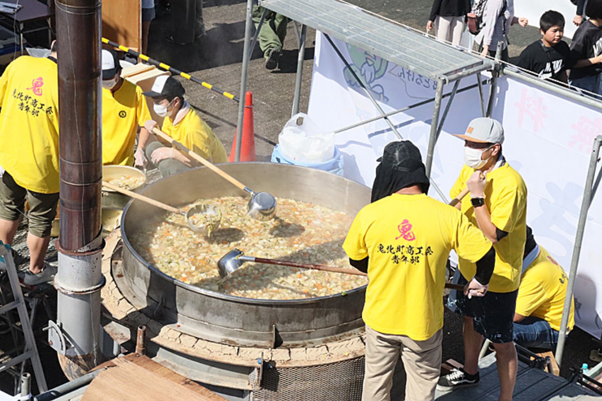 秋空の下みんなで食べよう! 名物「ジャンボきじ鍋」の振る舞い