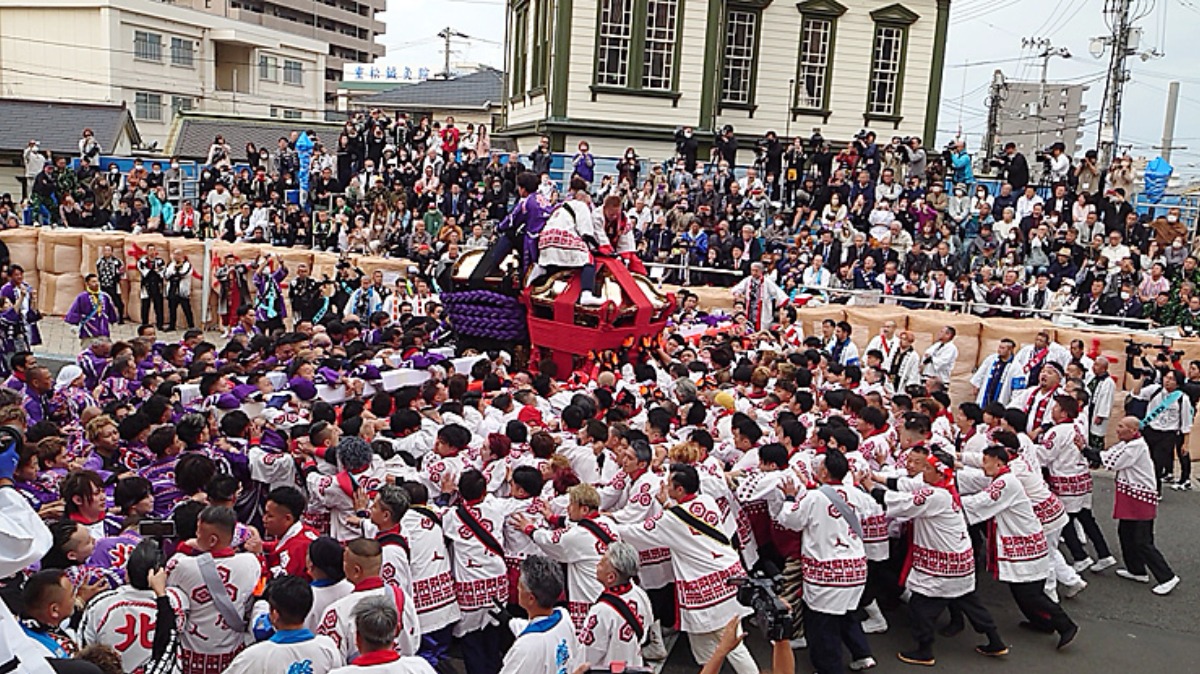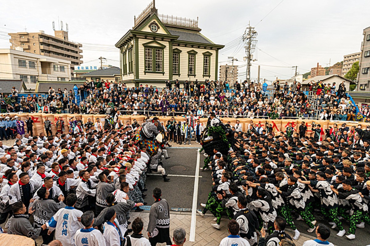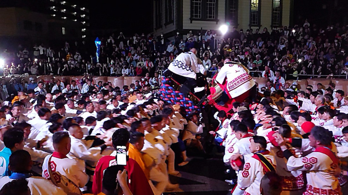数十人の担ぎ手が息を合わせ、重さ数百キロもある神輿を45度に傾けてぶつかり合う姿は、思わず息を呑んでしまうほどの大迫力!