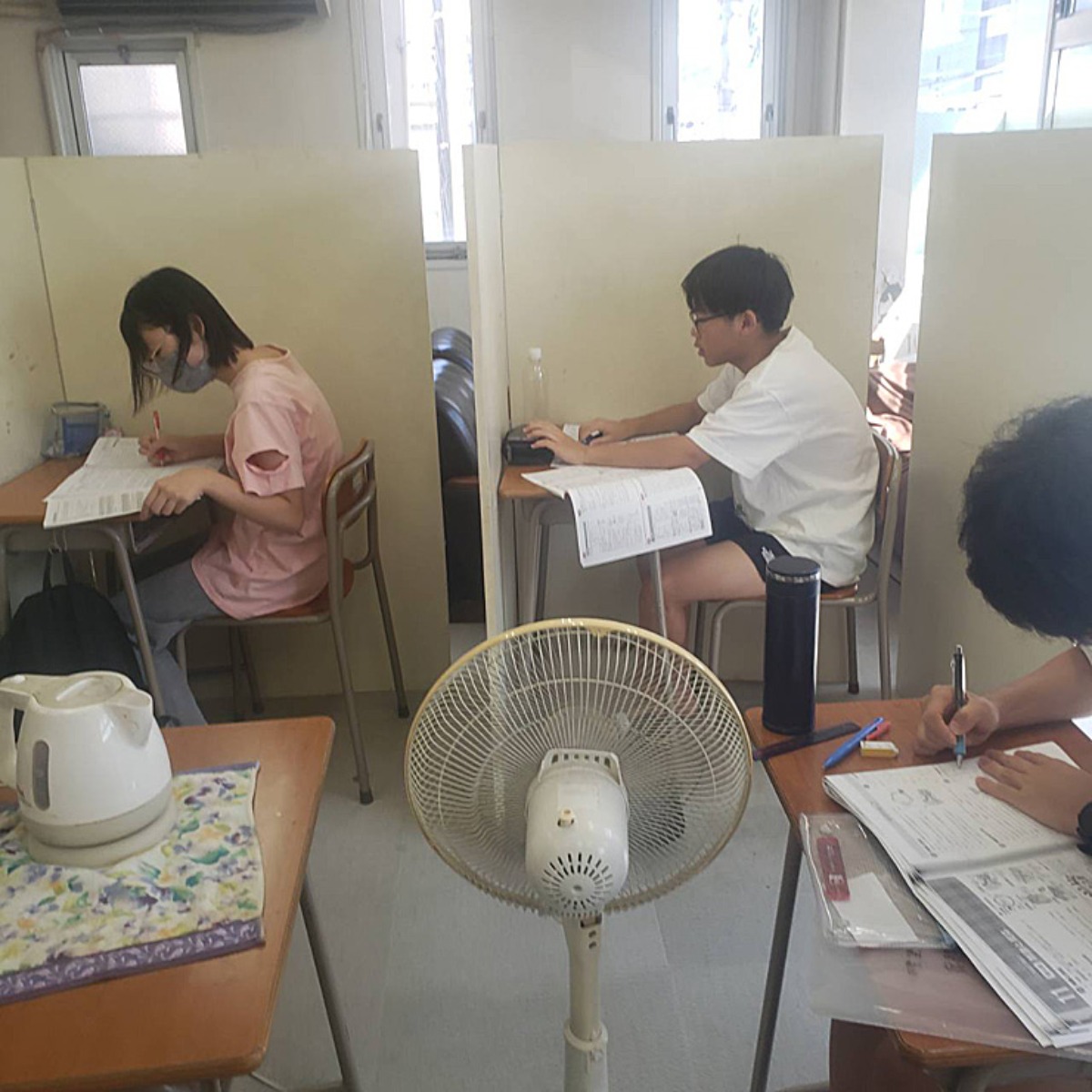 授業は、1・2日目は英語と数学、3日目は理科・社会・国語のローテーションで効率よく学習。