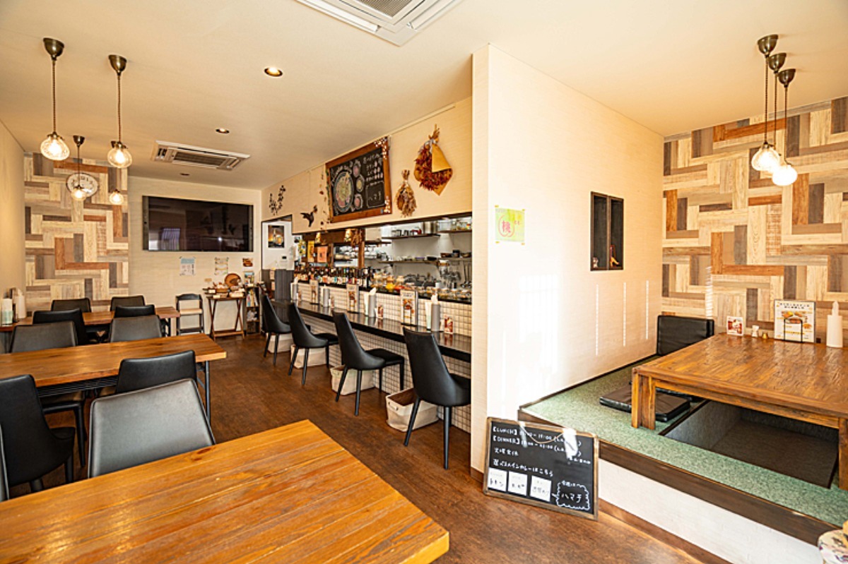 アットホームな雰囲気の店内は、テーブル席中心で、ゆったりとした時間を過ごすことができます。
