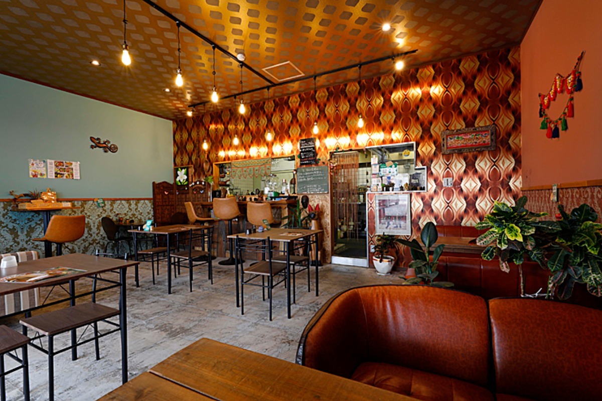 アジアンテイストの店内は、異国の雰囲気を感じさせながらも温かみのある落ち着いた空間です。