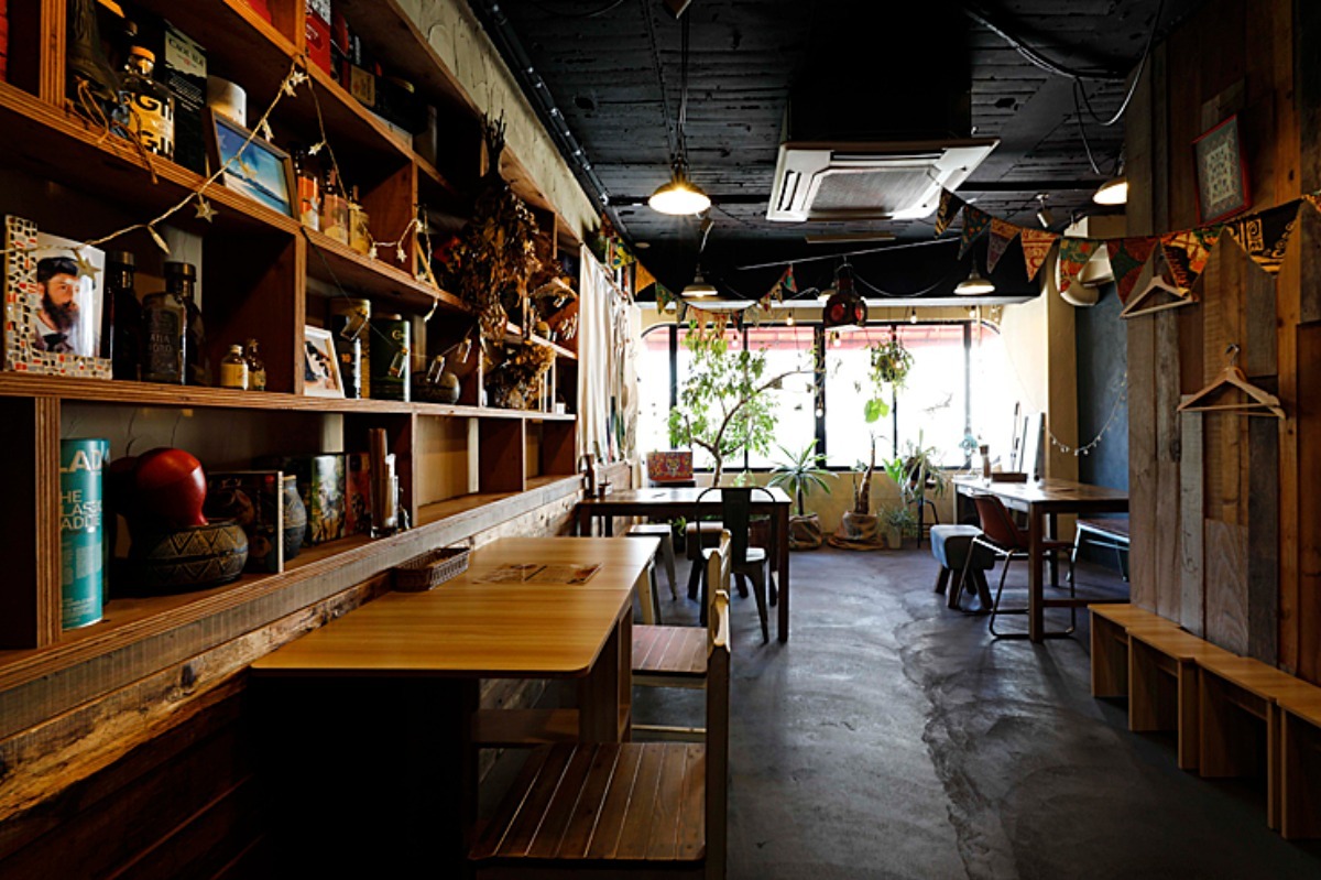 ジャマイカカラーを取り入れた明るい店内は、カウンター席とテーブル席があり、ひとりでもグループでも利用しやすい雰囲気です。