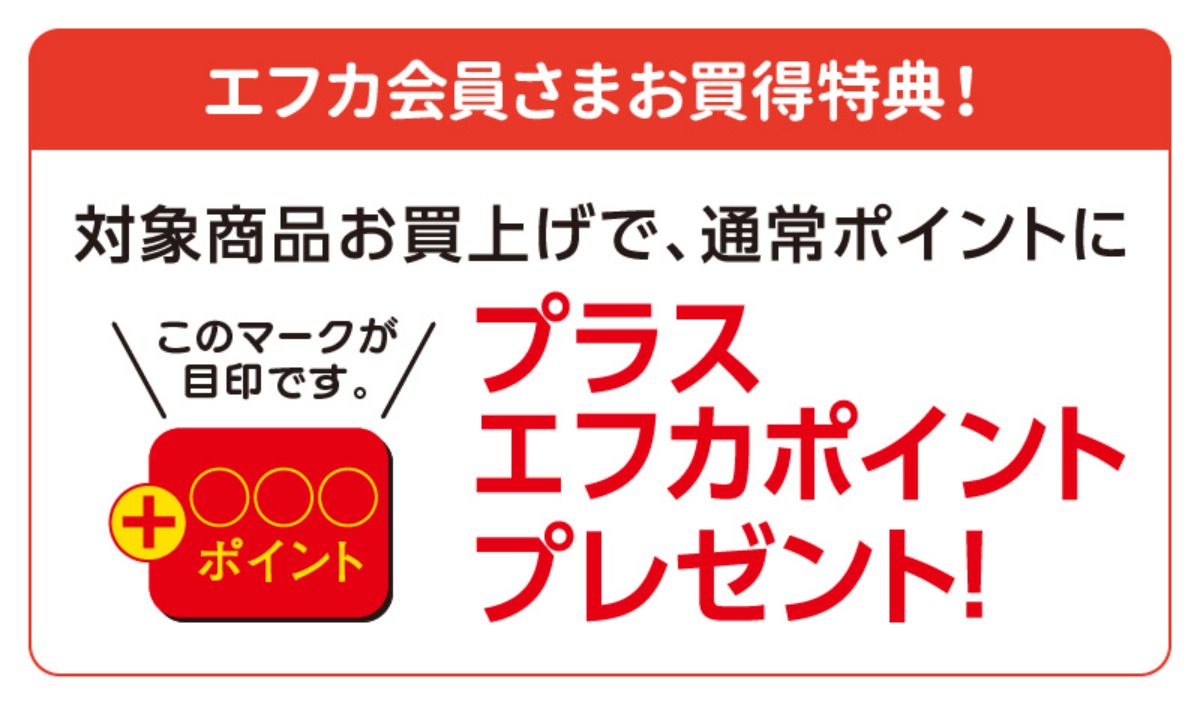 ※プラスポイント数は、エフカポイント○倍セールの場合でも変わりません。